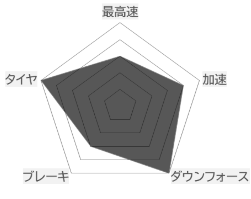 簡単に言う、と常にグリップが必要なコーナーが多く、タイヤへの負荷がかかる。特にフロントタイヤに過剰な負担がかかり、摩耗が進みやすい。また、ダウンフォースがかなり必要になってくるため、タイヤを地面に押し付ける力が強くなる=タイヤの熱が蓄積される。従ってデグラデーション(性能低下)を起こしやすくなる。