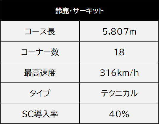 日本初の全面舗装と観客席の両方を備えたサーキットで、自動車メーカーのホンダによって建設された。非常にテクニカルでチャレンジングなサーキットで、ドライバーからの評判も高く、アイルトンセナやセバスチャン・ベッテルなどの名ドライバー―が名を上げるほどである。