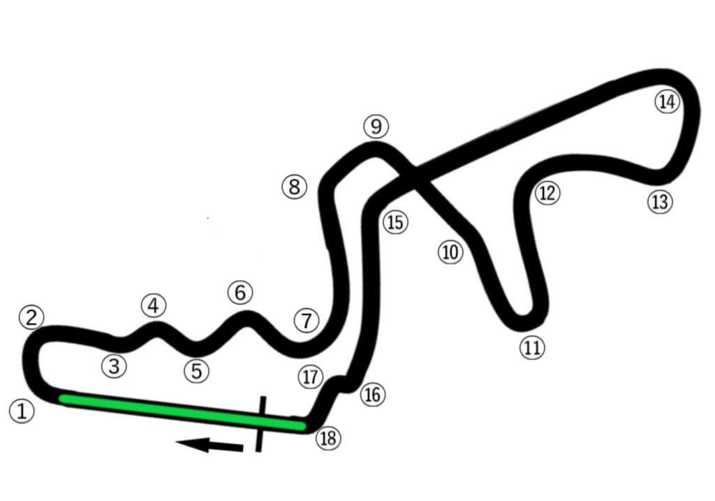コース自体は超がつくほどテクニカルなコースでドライバーに一息すらつかせてくれない。ストレートはメインストレートとターン⑭のバックストレートになるが、さほど長いストレートではない。