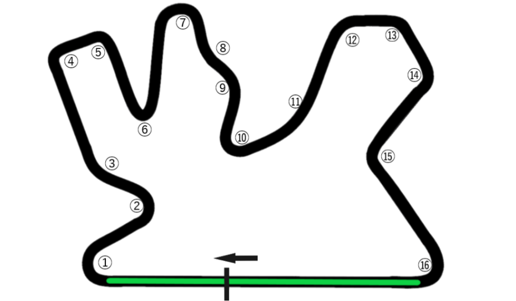 また、ターン⑩のタイトな左コーナーでは、前車の失速を狙ってオーバーテイクを仕掛けることができる。このセクションでは、ドライバーが最適な加速ポイントを見極め、タイヤのグリップを最大限に活用して前車を抜くことが求められる。これらのポイントでは、特にライン選択やブレーキングの精度、アクセルワークがオーバーテイクの成功に大きく影響する。