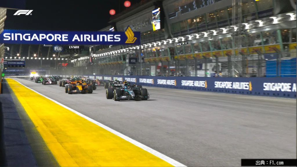 シンガポールGP決勝は路面温度33度・気温29度と蒸し暑いコンディションの中で行われた。序盤に接触や接近戦が見られたが、レースは比較的落ち着いた展開に。最終的にメルセデスのジョージ・ラッセルが速さを維持して優勝。レッドブルのマックス・フェルスタッペンが2位、マクラーレンのランド・ノリスが3位表彰台を獲得した。マクラーレンはこの結果により今季のコンストラクターズチャンピオンに輝いた。