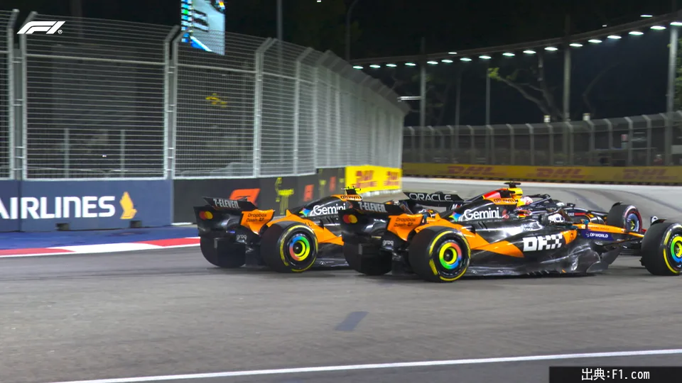 スタート直後、大きなクラッシュはなかったものの、マクラーレンのランド・ノリスとオスカー・ピアストリが接触しかける場面も。ノリスはフェルスタッペンと接触しフロントウィングを損傷、ピアストリは壁に追いやられそうになるなど、序盤から緊張感のある展開となった。
