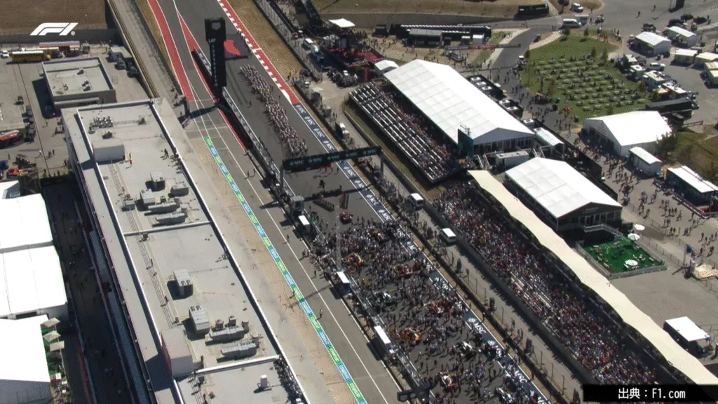 アメリカGP決勝は、路面温度45度・気温28度という厳しいコンディションでスタート。ソフト・ミディアム・ハードと各チームが異なるタイヤ戦略を採用し、戦略勝負の様相を呈した。