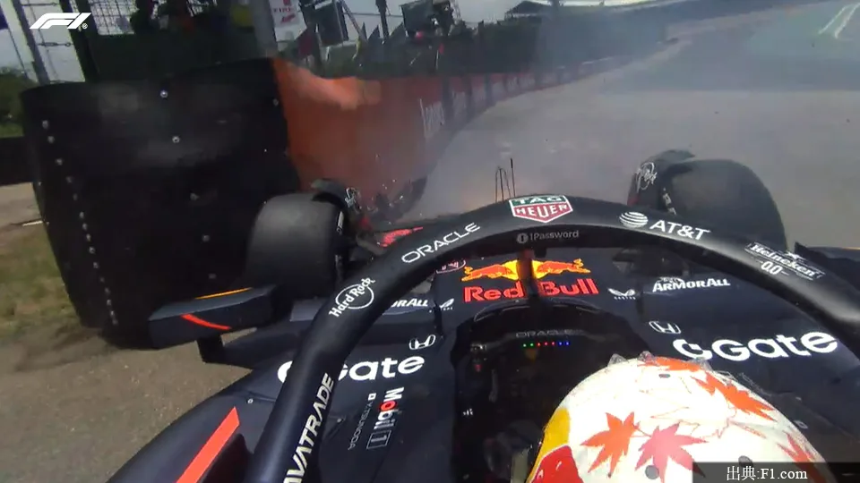 開始10分前後、レッドブルの角田裕毅がターン4の出口でスピン。フロントウィングを破損したが、幸い大きなダメージはなく、その後再走行が可能となった。